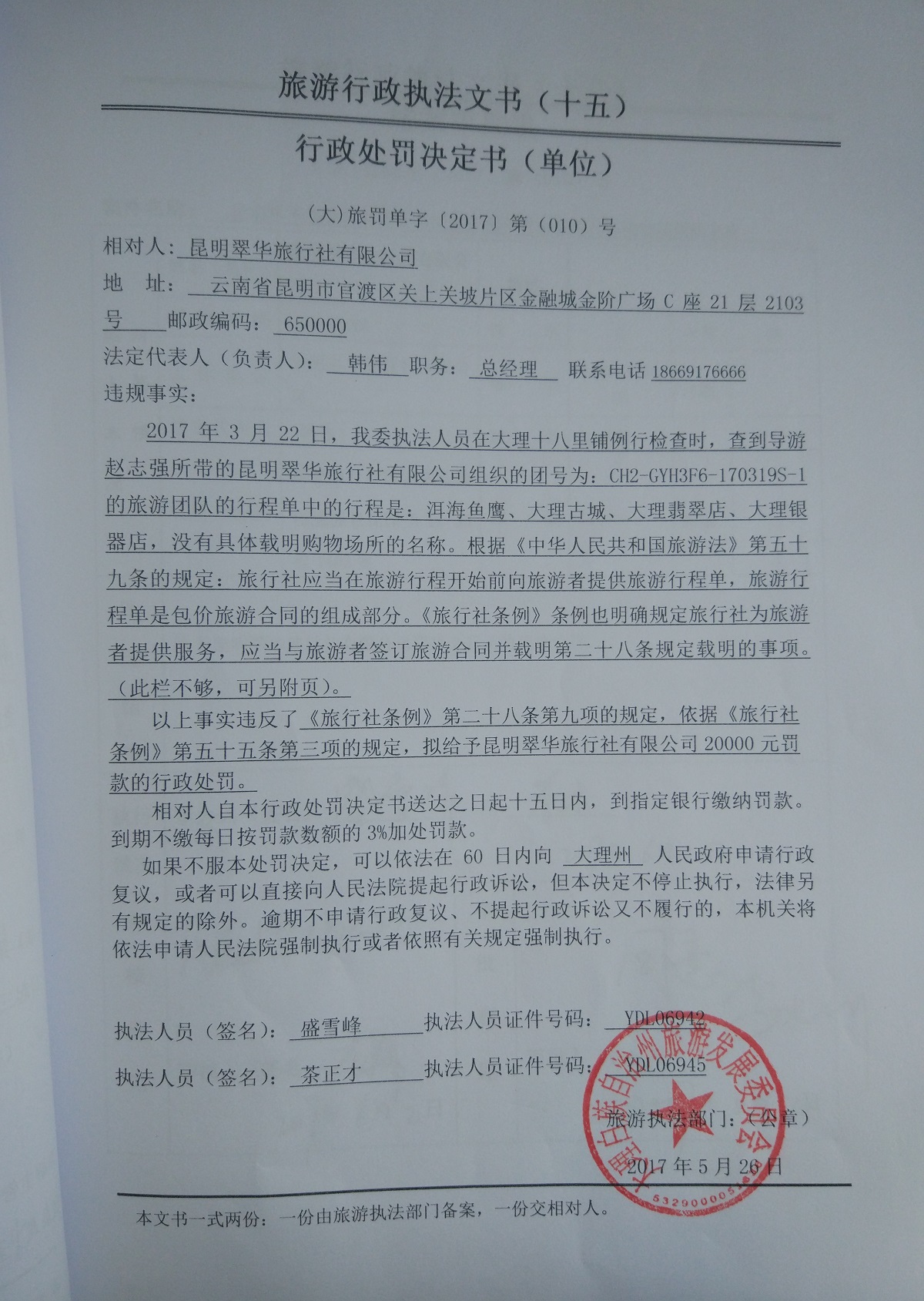行政处罚决定书(2017010)